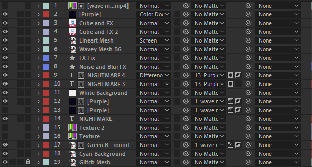 You will notice that insanely above all of the visuals glow, noise, etc. are all done on two singular adjustments layers. Starting with the structure you will want to use Compound Blur > Fast Box Blur > Red Giant Universe Looks. This plugin is my bread and butter for creating highly smooth visuals the only problem with it is if you wish to manually keyframe an effect you will need to use multiple adjustment layers.
